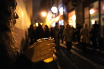 É sexta-feira à noite, faz frio mas mesmo assim dezenas de jovens juntam-se para beber nas ruas de Santos, em Lisboa. Sentados nos degraus de casas, em bancos de madeira à porta dos bares, segurando copos de cerveja, garrafas de vinho envoltas em jornais ou papelão. Alguns têm muito menos de 18 anos. É assim todos os fins de semana. É para lá que Luis Patrício se dirige, acompanhado da psicóloga Leonor Santos com quem costuma trabalhar e de outros psicólogos da associação “Outros Olhares” que também intervêm habitualmente na prevenção de comportamentos de risco junto de jovens.
